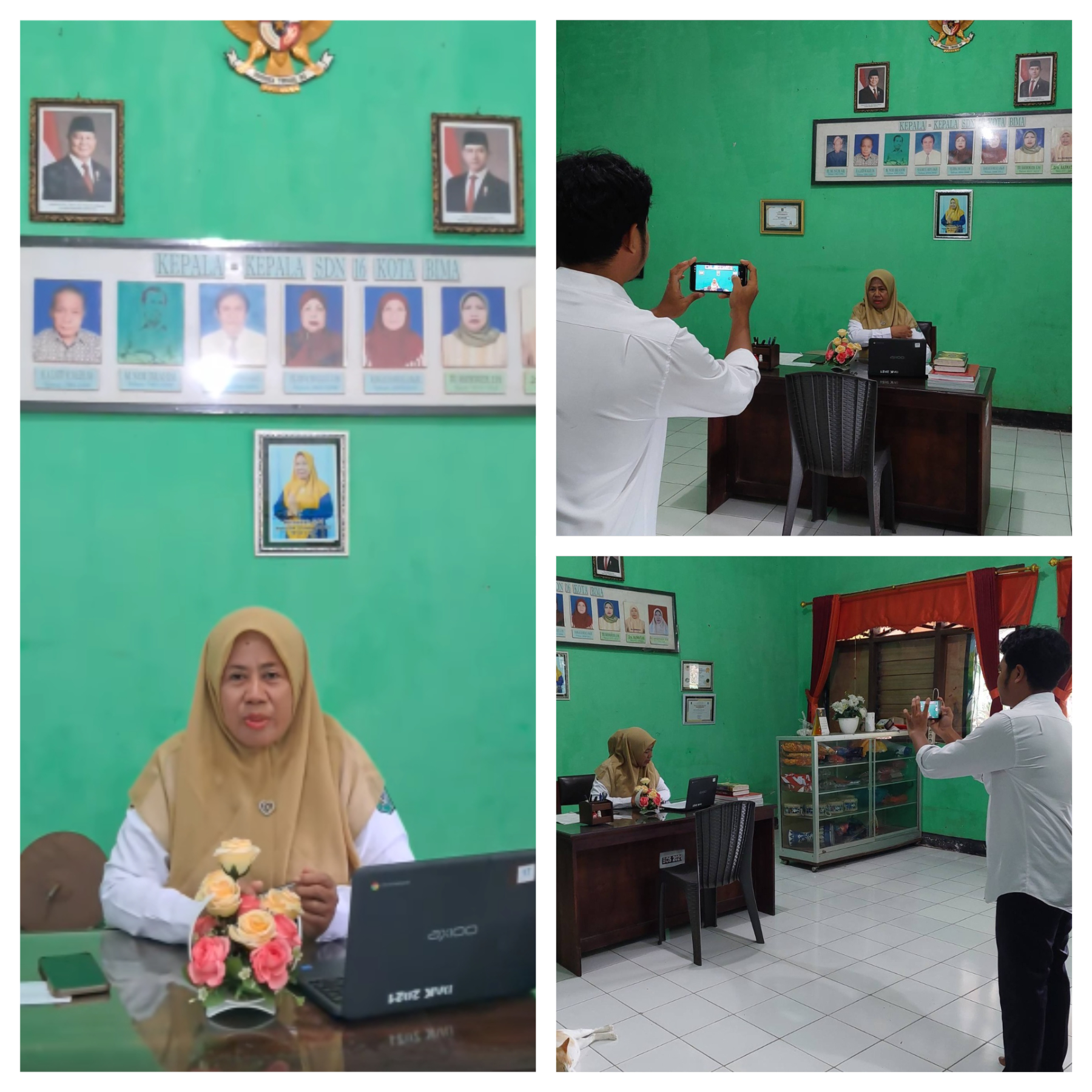 Kegiatan Kepala Sekolah SDN 16 Salama dalam Pembuatan Video Testimoni Pemanfaatan Bantuan Chromebook di SDN 16 Salama