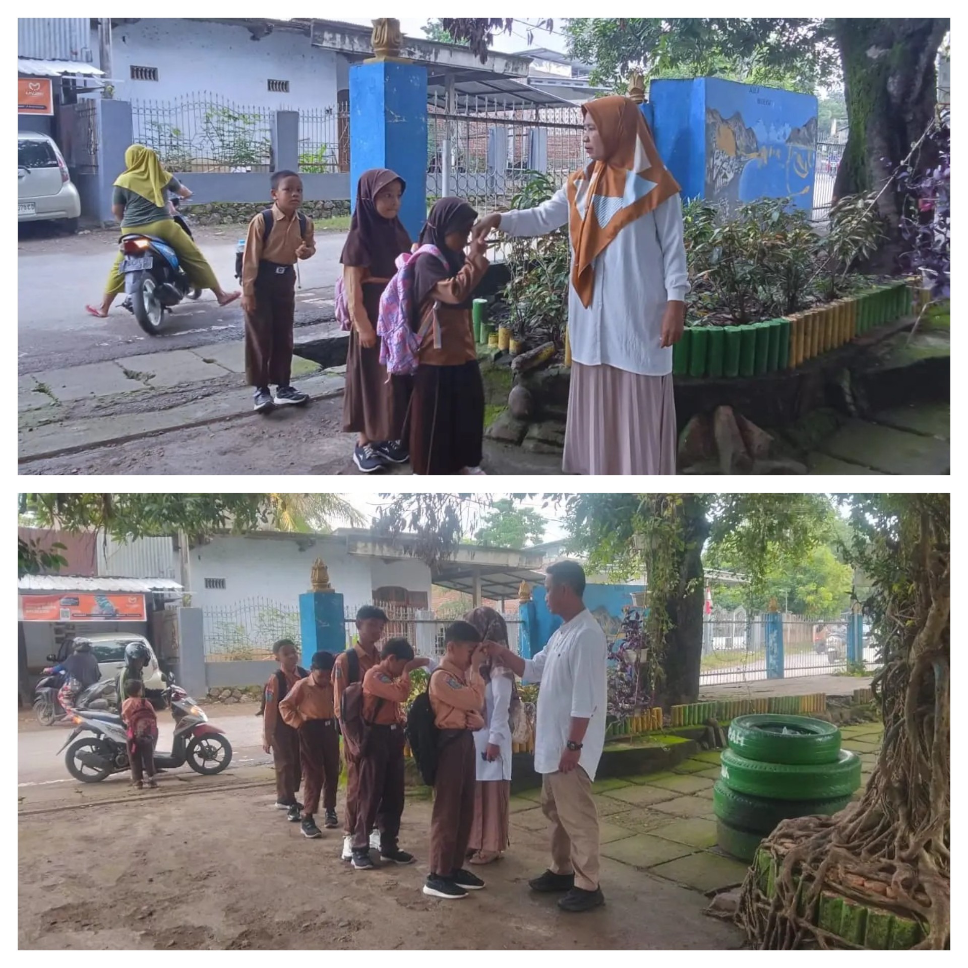 Guru SDN 16 Salama Menyambut Kedatangan Siswa dan Mengarahkan Kegiatan Rutin Jumat