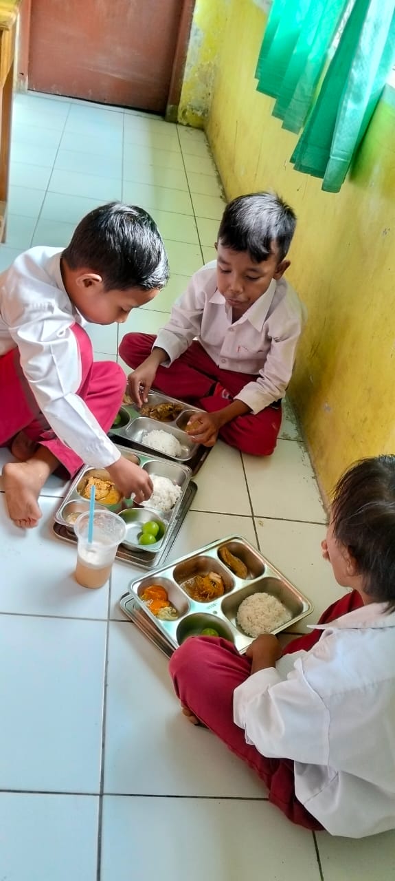 SENIN ( 08/12/2025 ) Anak-anak Kelas 2B SDN 16 Salama Kota Bima Melakukan Kegiatan Makan Bergizi Gratis (MBG)