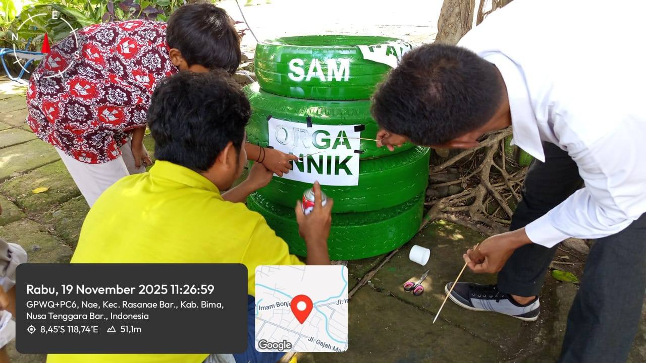 Guru dan Siswa SDN 16 Salama Gotong Royong Mengecat Ban untuk Alas Tempat Sampah